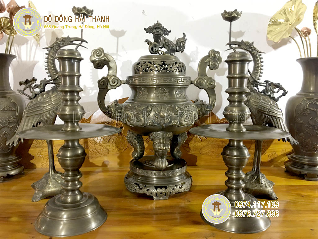 Tại Đồ đồng Hải Thanh 668 Quang Trung, Hà Đông, Hà Nội. Chúng tôi chuyên cung ứng ra thị trường nhiều mẫu đỉnh đồng thờ cúng, đỉnh đồng khảm ngũ sắc, đồ thờ cúng cao cấp chất lượng nhất thị trường.