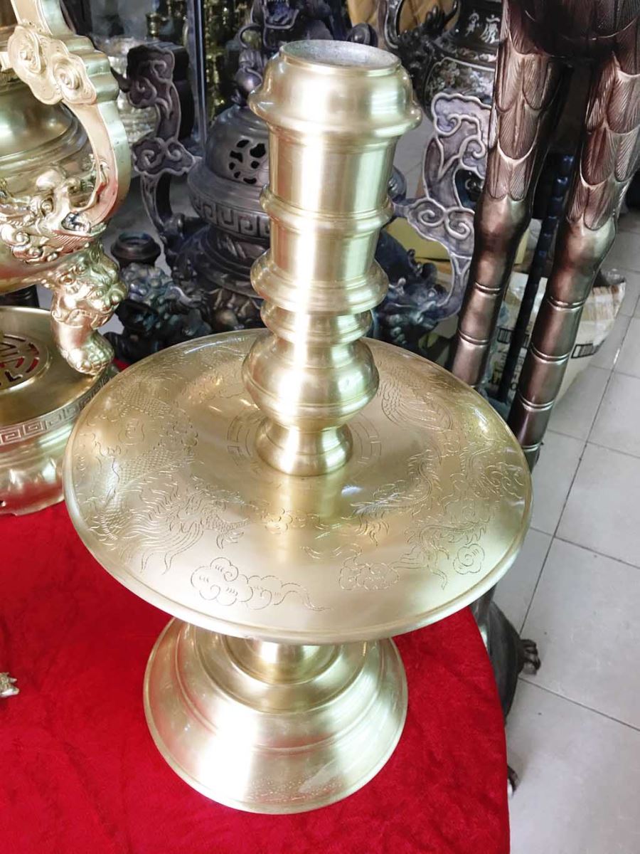 Nến thờ cúng bằng đồng vàng chặm khắc hoa văn rồng phượng