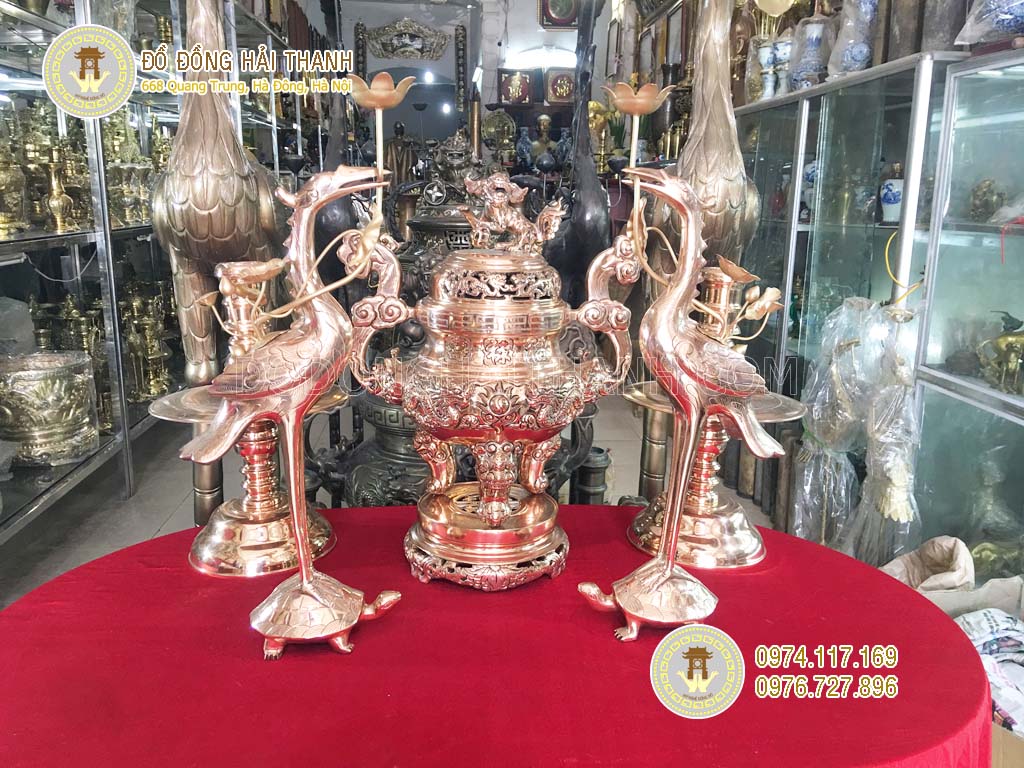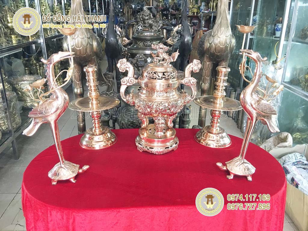 Chọn mua bộ đồ đồng thờ cúng tại cơ sở Đồ đồng Hải Thanh nhiều mẫu sản phẩm được giới thiệu ở trên, các bạn có thể thấy được trình độ chế tác của các nghệ nhân. Thêm vào đó, bộ ngũ sự đỉnh đồng, bộ đồ thờ đầy đủ còn toát lên nét đẹp sang trọng, cao cấp. Một trong những nền tảng tạo ra ưu thế này chính là chất liệu đồng đỏ loại chuẩn, đảm bảo sự tinh khiết tuyệt vời.