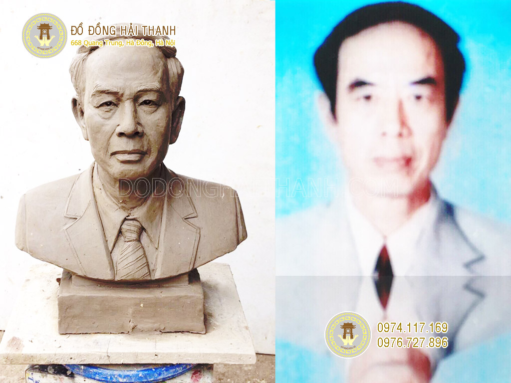 Báo giá đúc tượng chân dung bằng đồng theo yêu cầu áp dụng với nguyên liệu đúc đồng đỏ, hoàn thiện và giao hàng tận nơi bán kính 50km (từ Hà Nội). Giá đã bao gồm khảm tên chữ Bạc. bằng đồng. Đắp mẫu tượng chân dung bằng đất , đổ mẫu thạch cao: Quá trình đắp mẫu tượng chân dung bằng đất mất khoảng 10 đến 20 ngày tùy thuộc vào kích thước, hình ảnh chân dung cung cấp.