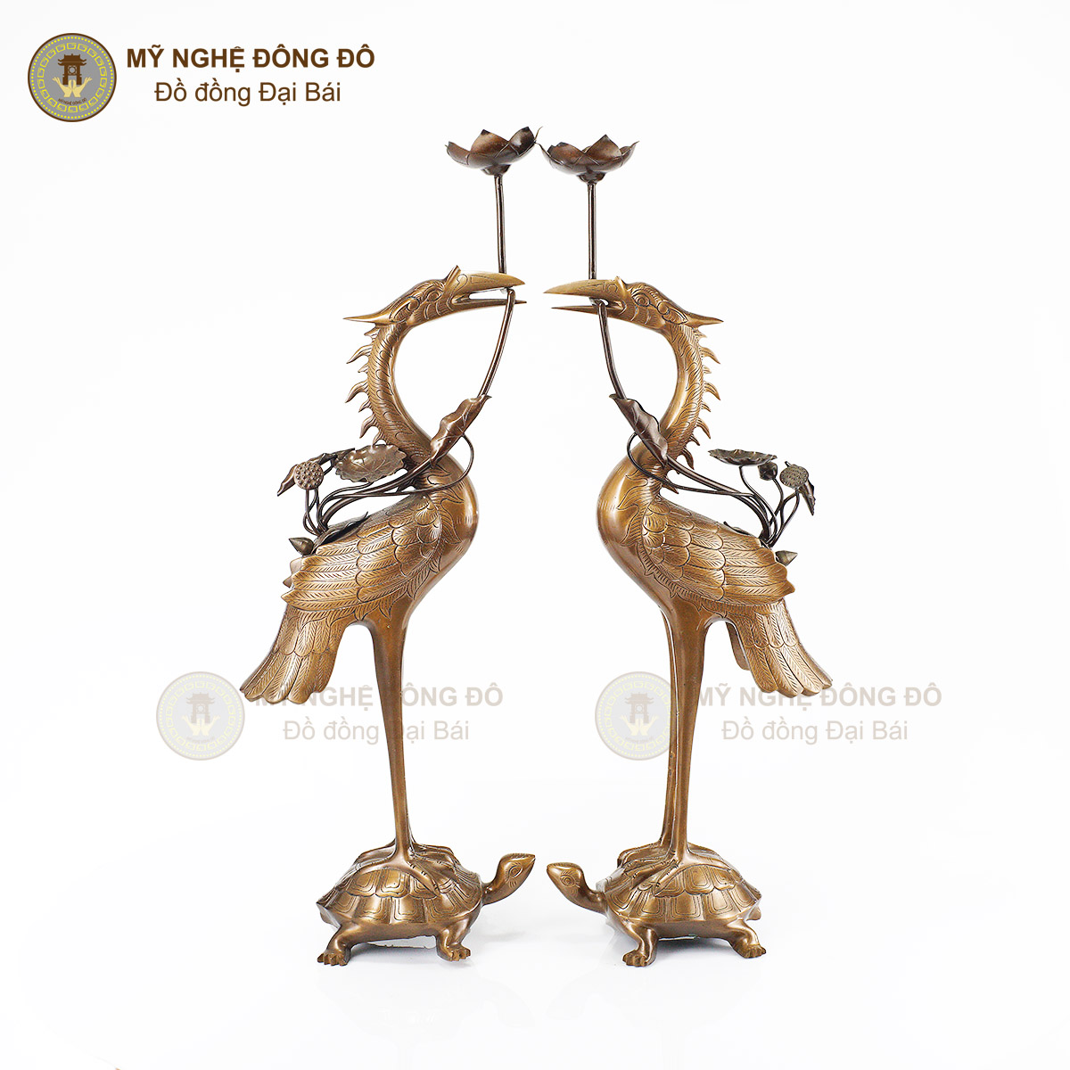 Đôi hạc đồng thờ cúng cao 50 cm phù hợp với bộ đỉnh đồng hoa sòi 50 cm