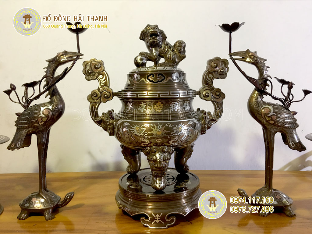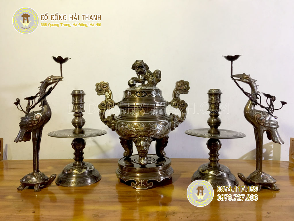 Ý nghĩa bộ đỉnh đồng thờ cúng khảm ngũ sắc trên ban thờ gia tiên