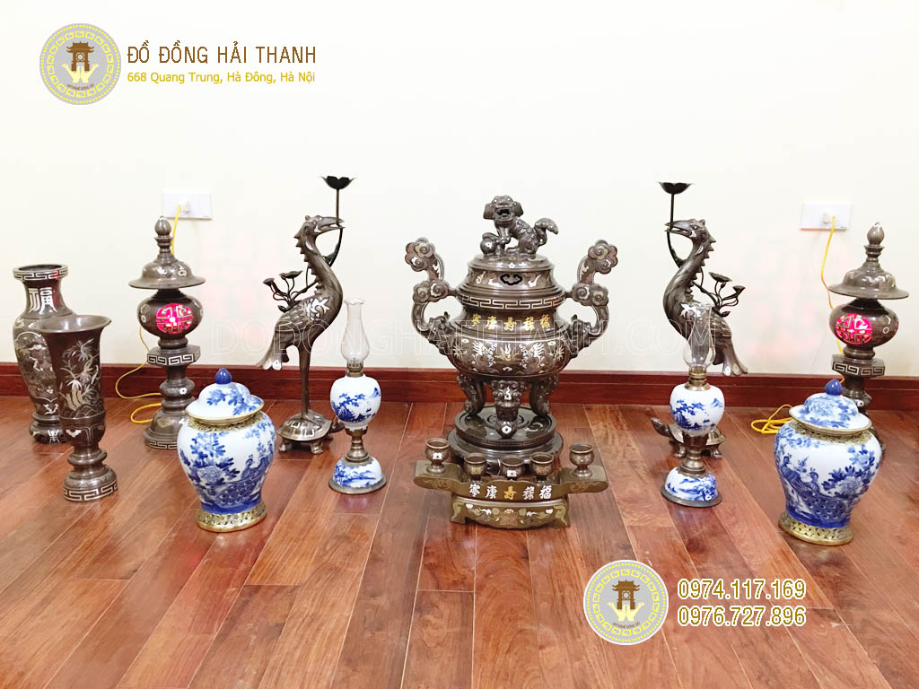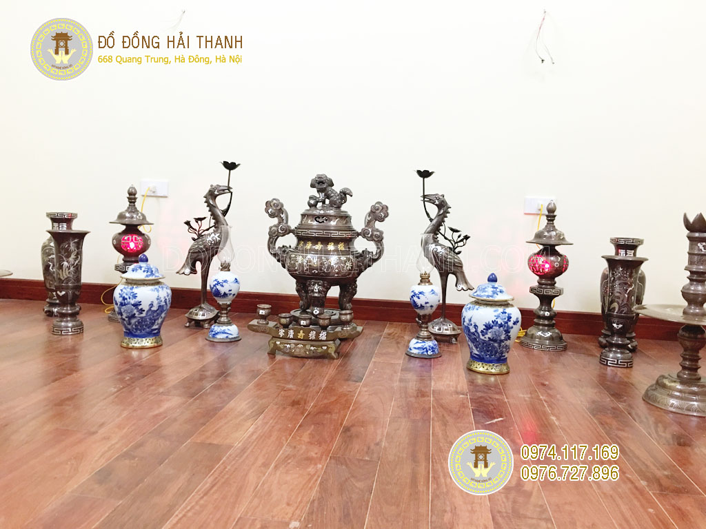 Bộ đỉnh đồng thờ cúng khảm ngũ sắc ngũ sự, chọn mua đỉnh đồng thờ cúng khảm ngũ sắc chất lượng tại Hà Nội, Sài Gòn, Nơi bán đỉnh đồng khảm ngũ sắc giá rẻ, đẹp và chất lượng. Liên hệ Đồ đồng Hải Thanh.