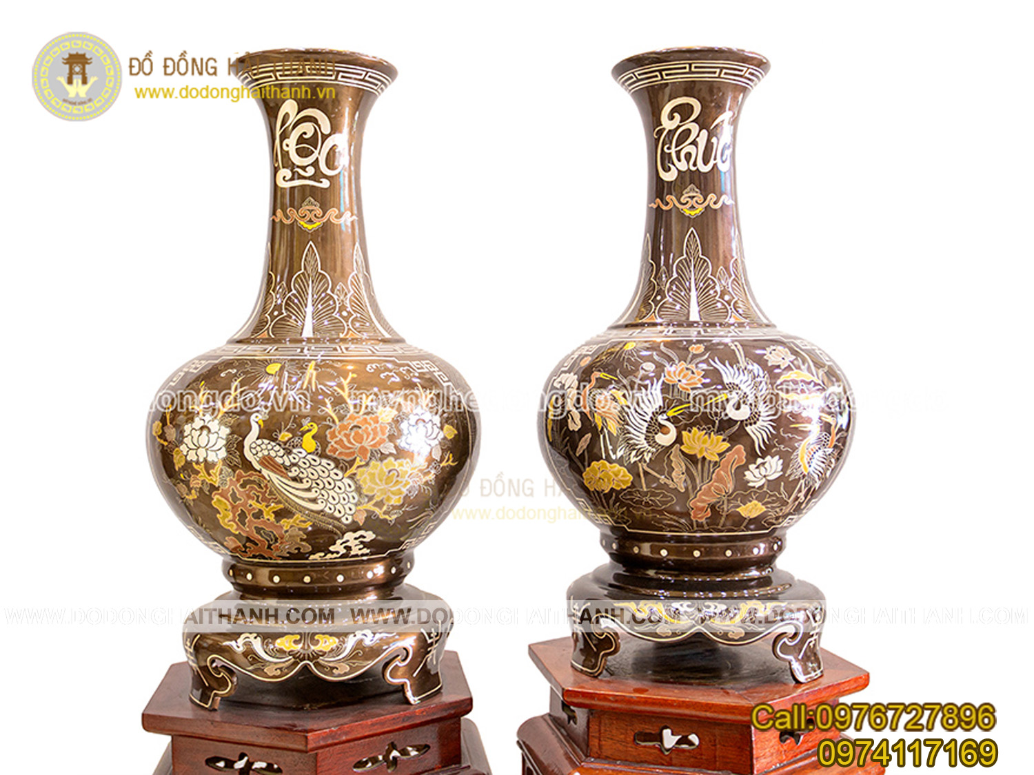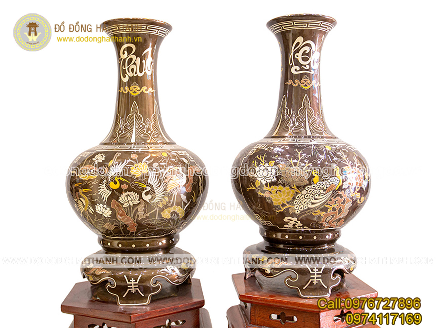 Hình ảnh chi tiết lọ hoa đồng khảm ngũ sắc