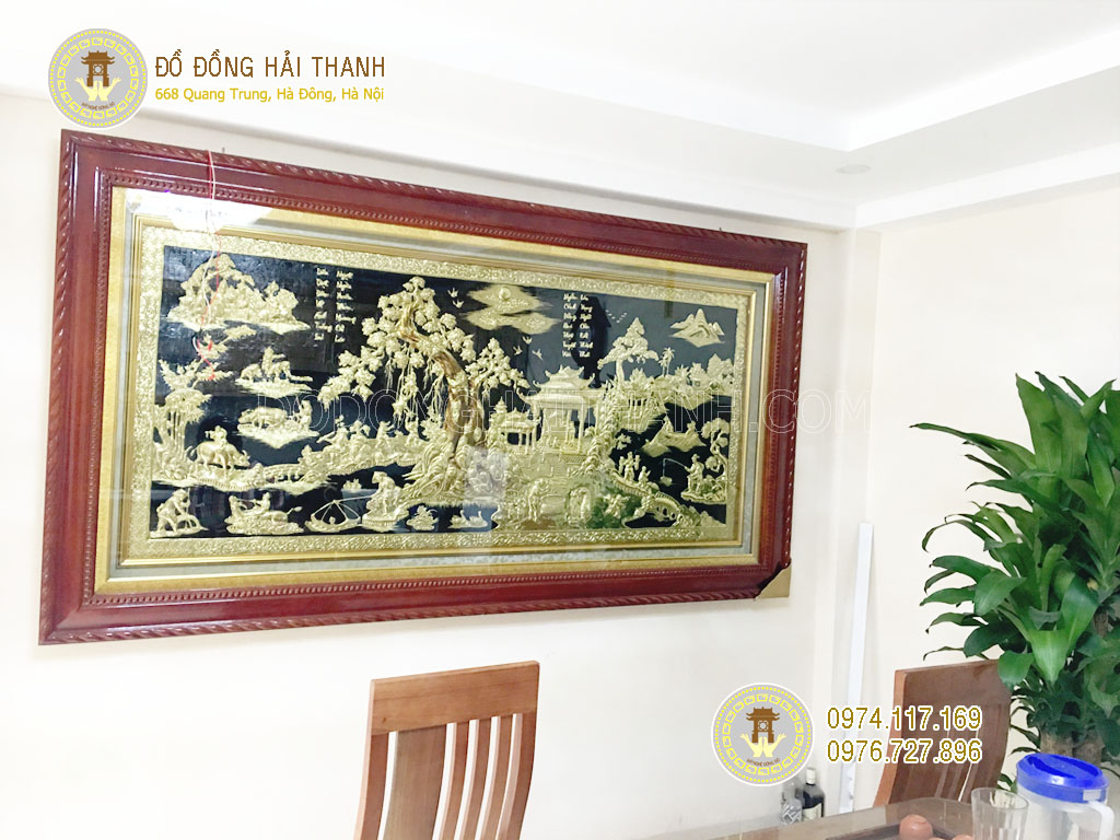 Đồ đồng Hải Thanh chuyên tranh đồng trang trí phòng khách, mẫu Tranh Đồng Quê Bằng Đồng cao cấp thực hiện trực tiếp bởi các nghệ nhân hàng đầu của làng nghề, với tiêu chuẩn chế tác khắt khe bậc nhất, nguyên liệu đồng nhập khẩu từ Hàn Quốc và Châu Âu, chạm thủ công hoàn toàn cho đường nét tinh xảo đến từng chi tiết nhỏ điều này đã làm nên sự khác biệt hoàn toàn so với những tranh đồng quê hàng dập cốt ở các cơ sở khác.
