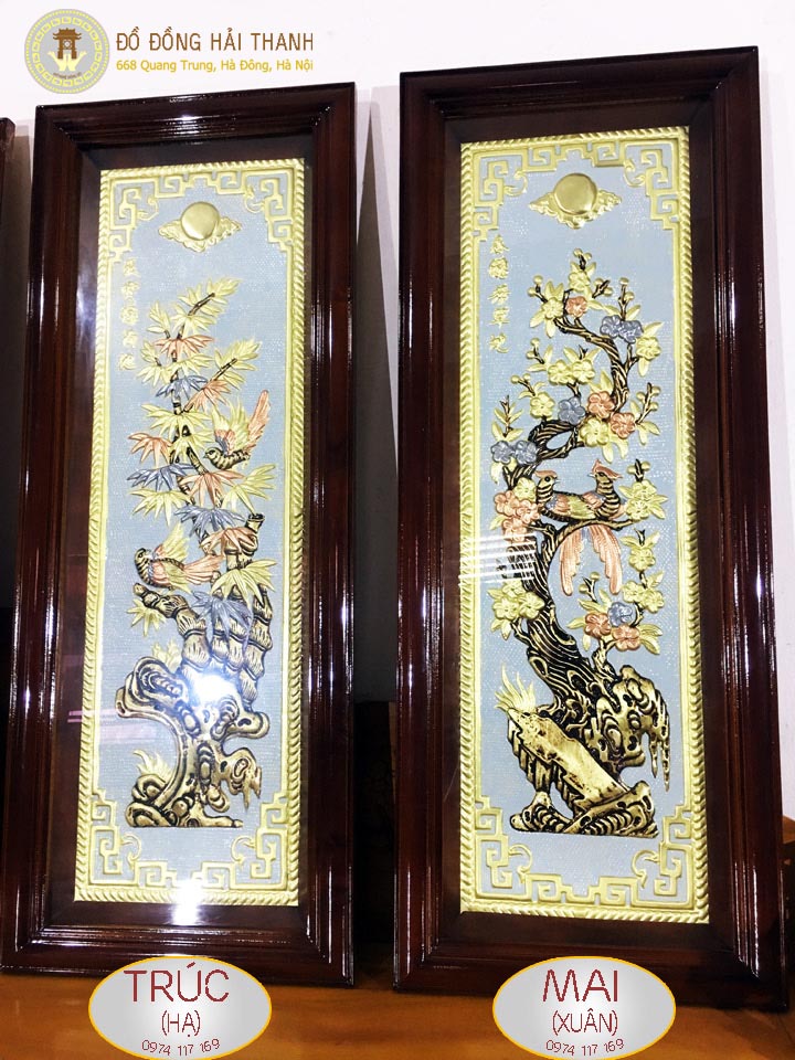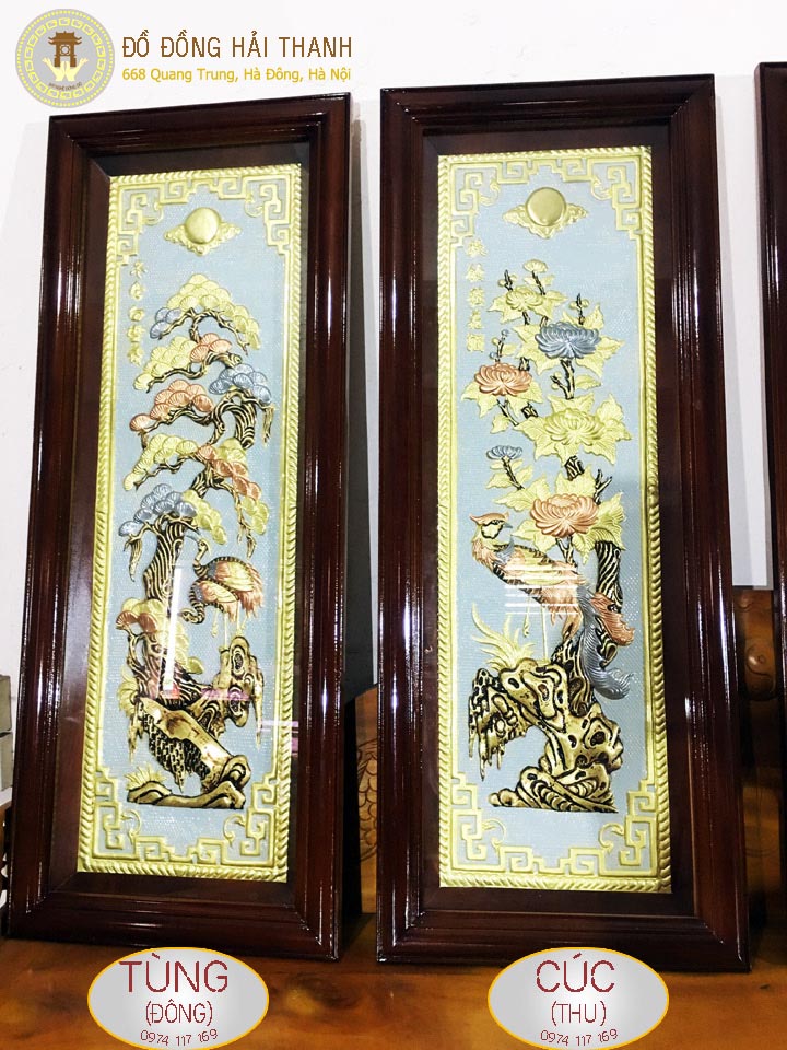 Tranh Tứ Quý Bằng Đồng được sản xuất thủ công bằng phương pháp gò chạm trên chất liệu đồng tấm (đồng đỏ hoặc đồng vàng). Với bàn tay điêu luyện của các nghệ nhân, với kinh nghiệm truyền thống của làng nghề, những bức tranh tứ quý hiện ra rất đặc sắc, độc đáo và sang trọng vừa góp phần trang trí không gian nội thất vừa mang lại những điều tốt đẹp cho gia chủ.